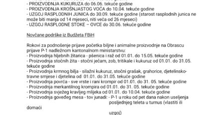 OBAVJEŠTENJE ZA POLJOPRIVREDNE PROIZVOĐAČE