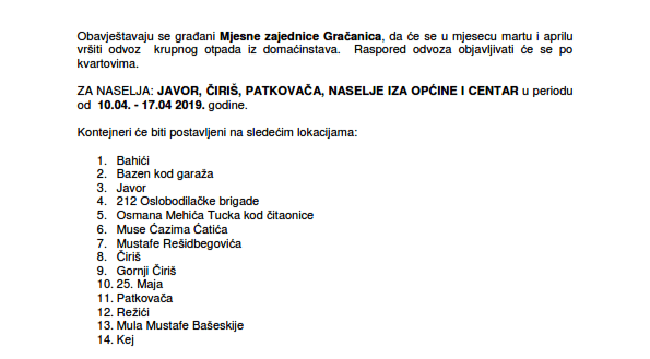 OBAVJEŠTENJE O ODVOZU KRUPNOG OTPADA