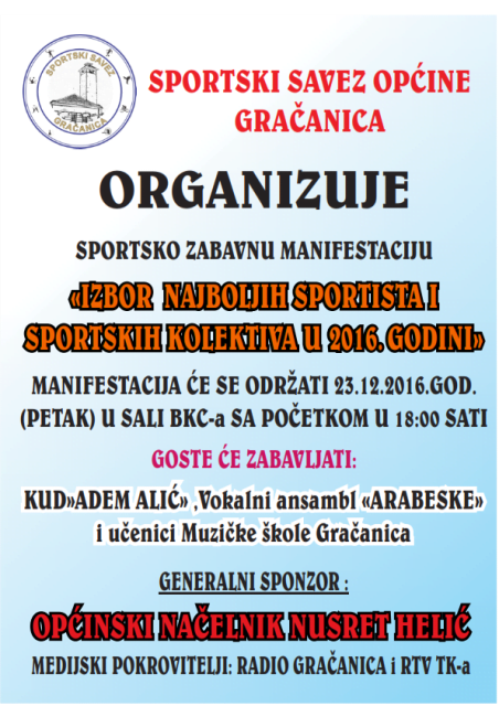 IZBOR NAJBOLJIH SPORTISTA I SPORTSKIH KOLEKTIVA U 2016. GODINI