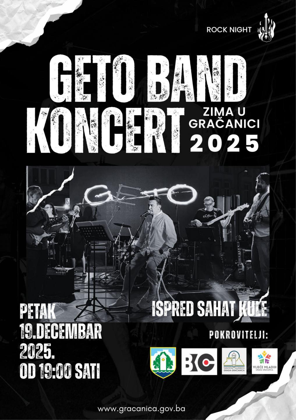 Jasminka Omerović2025-12-18T13:42:51+01:00 Nastavljamo sa manifestacijom Zima u Gračanici, a u petak nas očekuje Geto bend! Energičan koncert i vrhunska rock atmosfera u srcu grada. Lokacija: ispred Sahat-kule Datum: petak, 19. decembar 2025. godine Vrijeme: od 19:00 sati Vidimo se! #zimaugracanici #getobend #rocknroll Share this post Facebook Twitter LinkedIn Google + Email