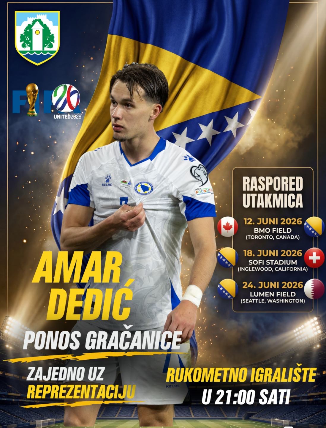 Poseban ponos osjećamo jer dres naše reprezentacije nosi i naš sugrađanin, 𝐀𝐦𝐚𝐫 𝐃𝐞𝐝𝐢ć