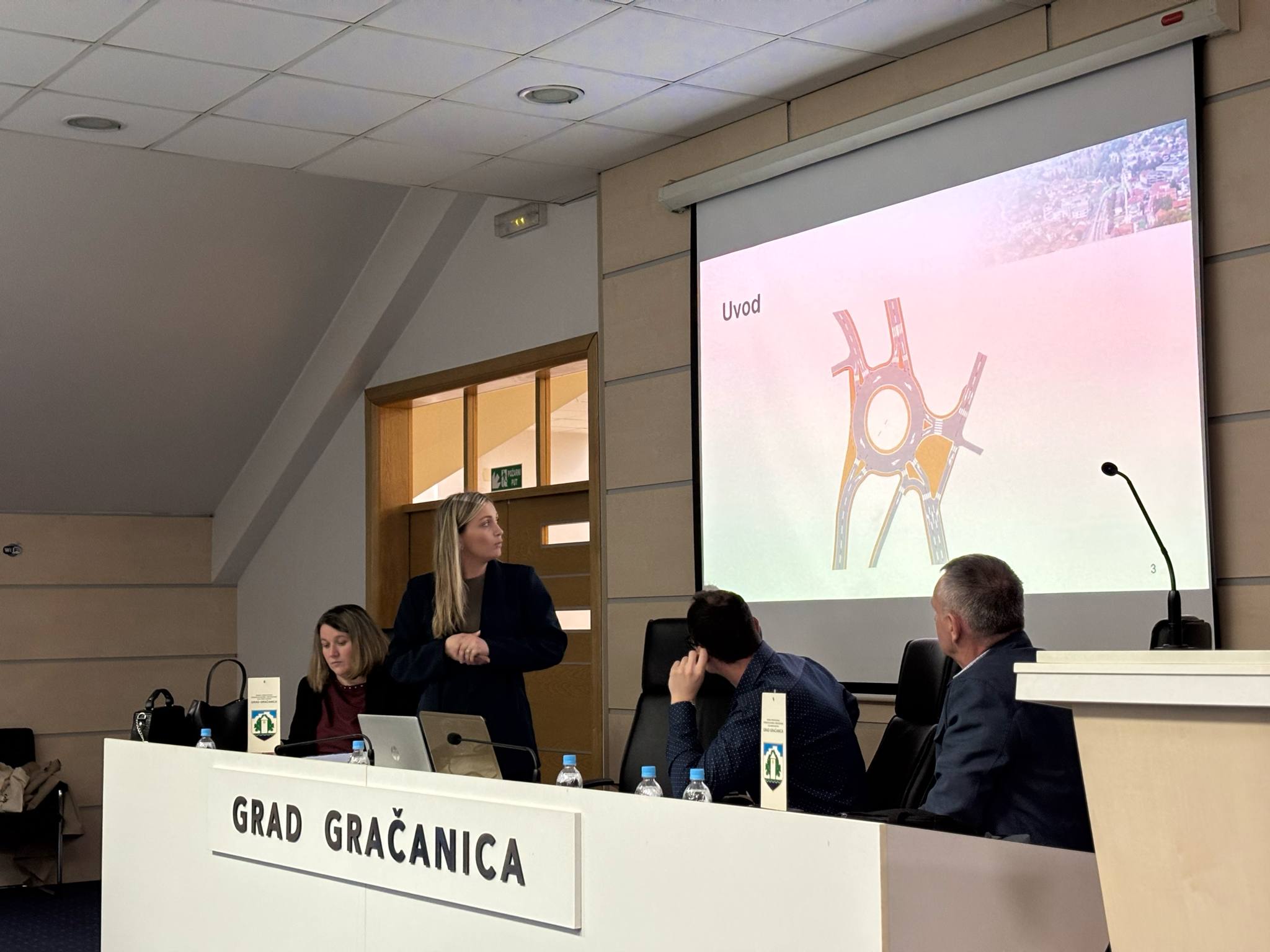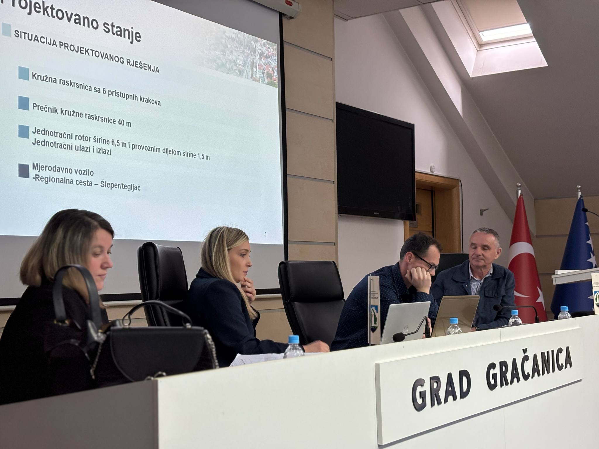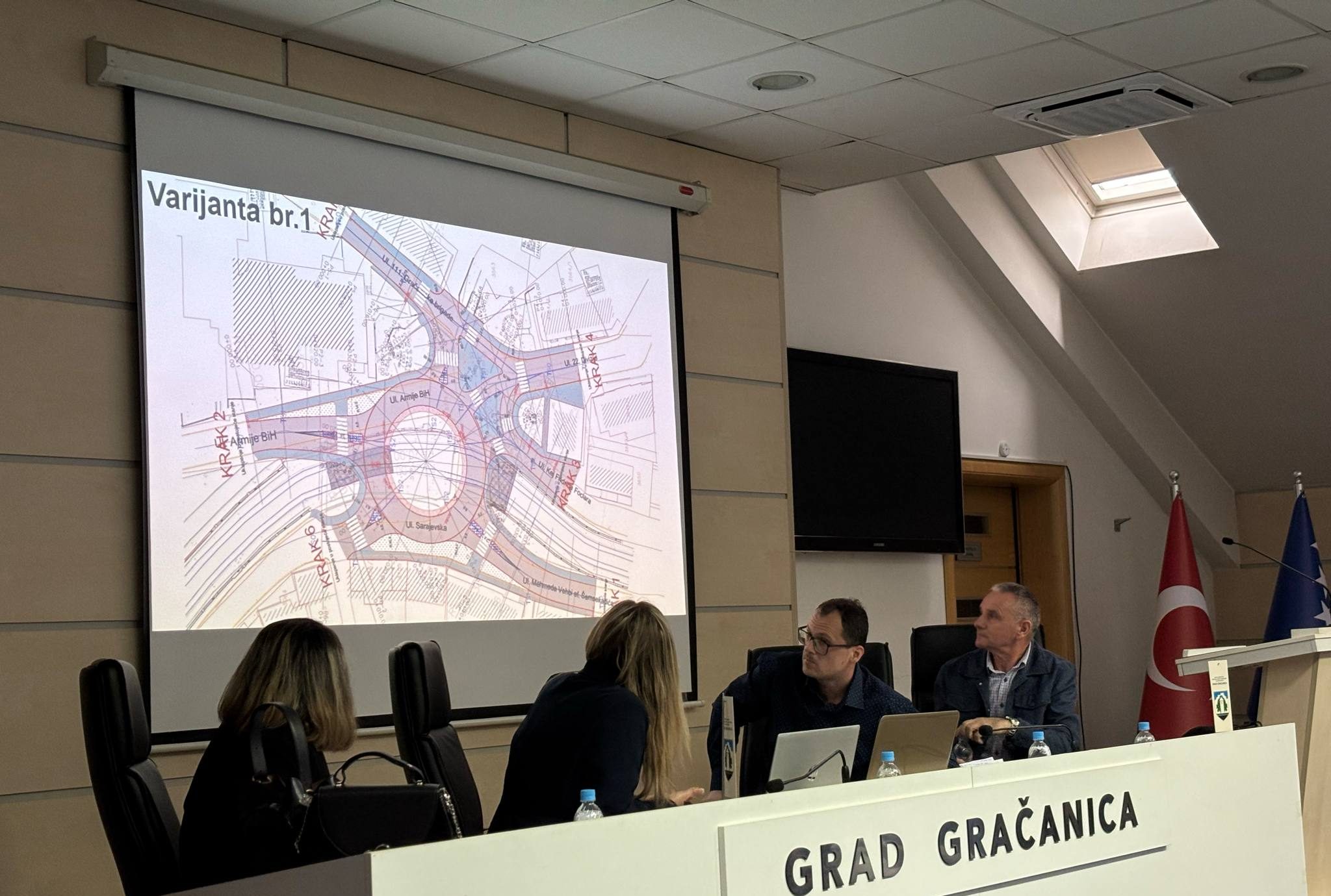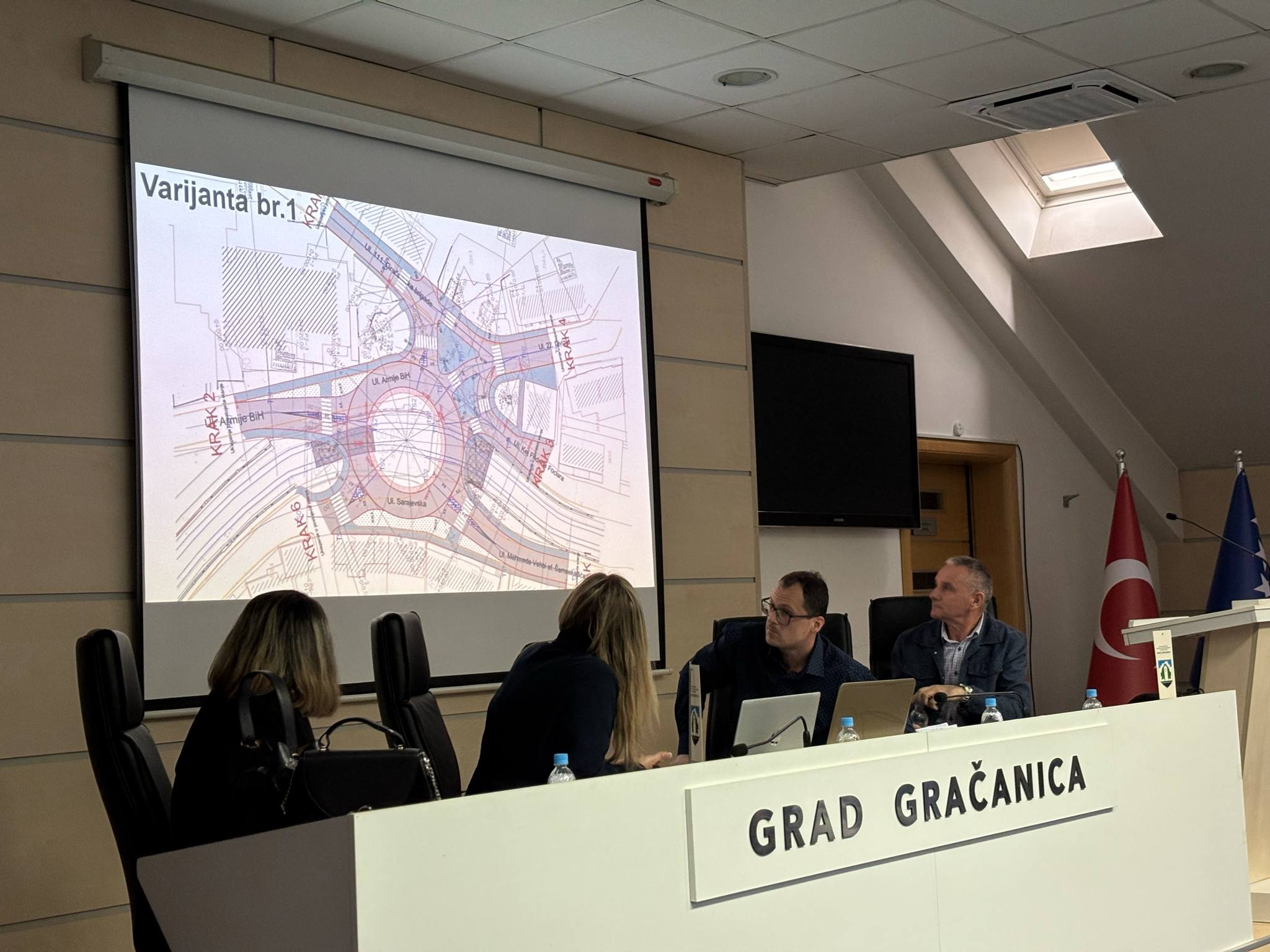 U Gračanici je danas na proširenom sastanku održana prezentacija idejnog rješenja za rekonstrukciju raskrsnice kod BKC-a, koju su predstavili predstavnici JU Direkcije regionalnih cesta Tuzlanskog kantona i projektantske kuće FM Inženjering d.o.o. Sarajevo. Prezentacija je organizovana u saradnji s nadležnim službama Gradske uprave, a idejno rješenje izrađeno je u skladu s ranijim prijedlozima i preporukama.
