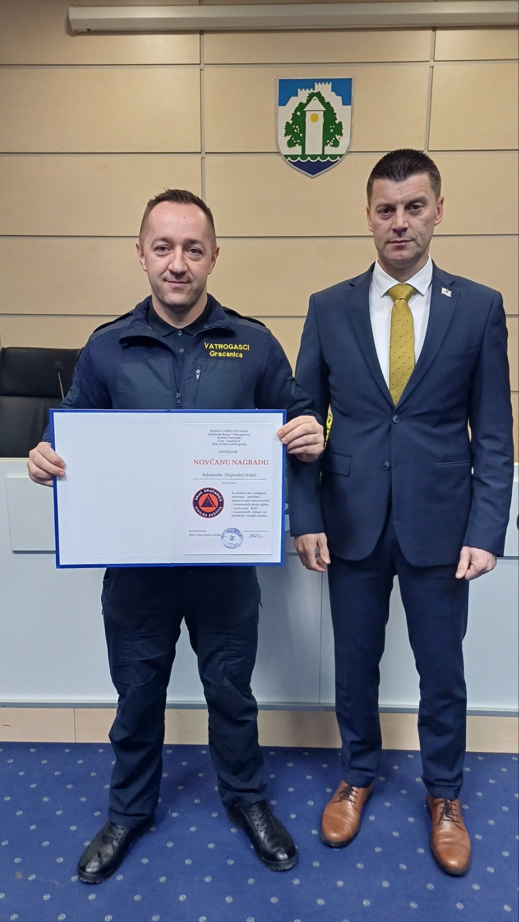 Za poseban doprinos u radu Profesionalne vatrogasne jedinice nagrađeni su Damir Šaković te Sabahudin Nakić koji su se istakli profesionalnim odnosom, znanjem i spremnošću.