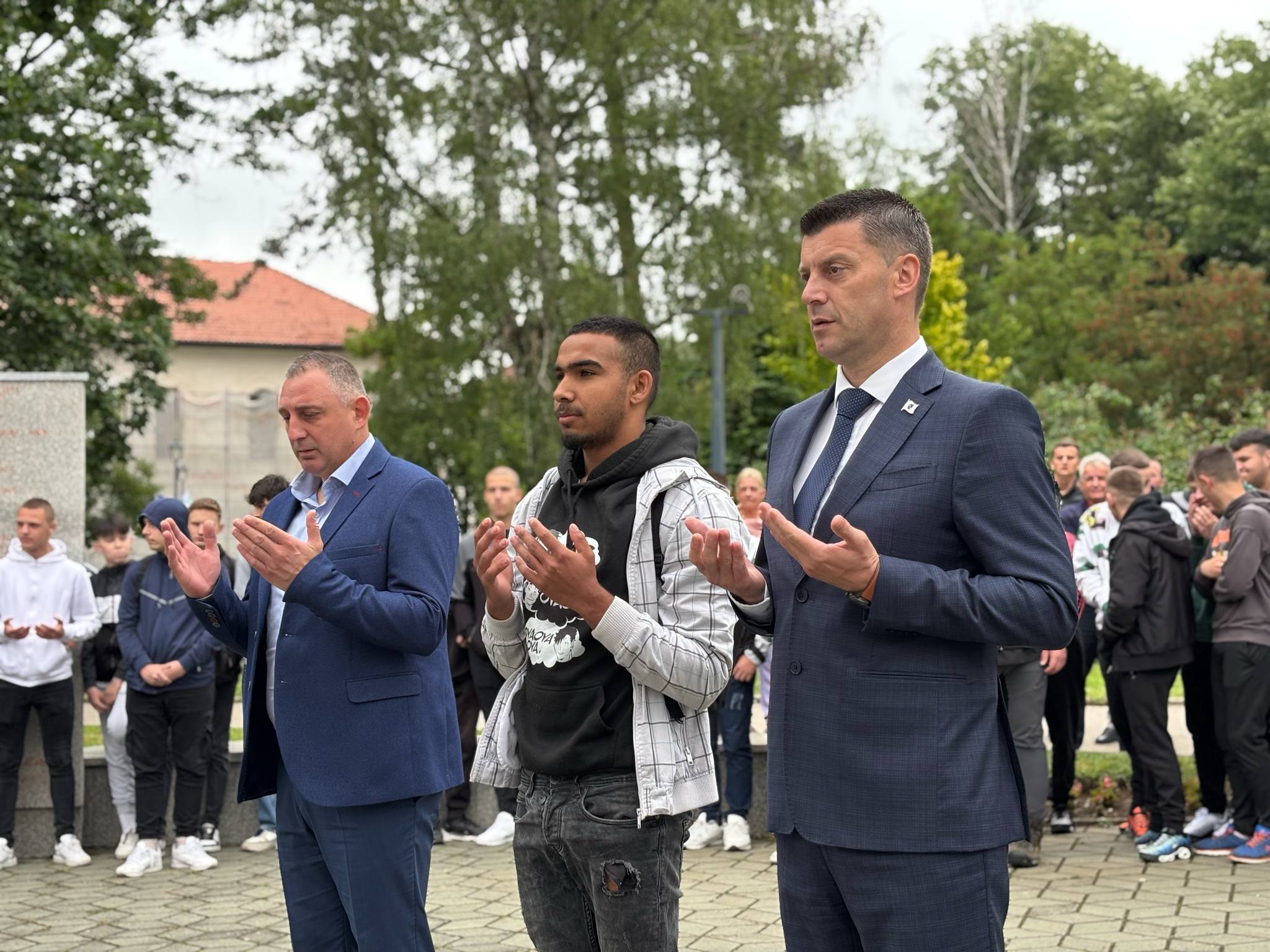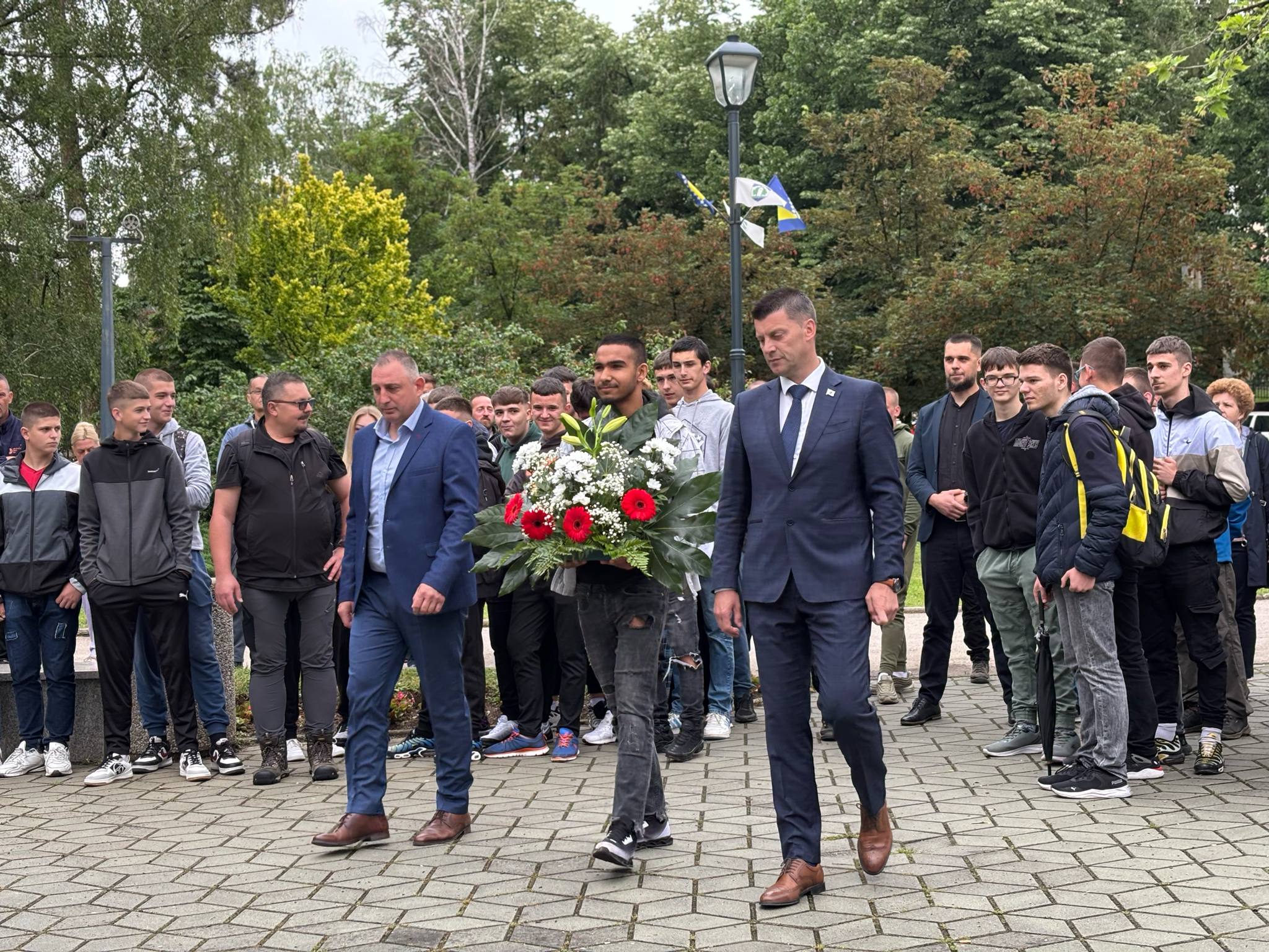 Gradonačelnik Sadmir Džebo i predsjedavajući Gradskog vijeća Mirza Okić položili su cvijeće na spomen-obilježje, a zatim su postrojenu kolonu učesnika ispratili u pravcu Zečevog gaja.